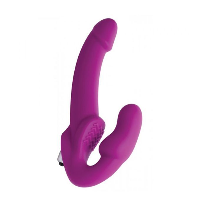 De vibrerende siliconen strap-on dildo is ontworpen zonder harnas voor een ongeëvenaarde ervaring. Deze strapless dildo blijft perfect op zijn plaats dankzij de inbrengbare, gebogen sonde die niet alleen de drager een heerlijke G-spot stimulatie biedt, maar ook zorgt voor intense vibraties die je partner zullen verrassen. Met een krachtige bullet die eenvoudig aan en uit te schakelen is, voel je de sensaties van de bolvormige penetrator door de lange, gebogen schacht stromen. De zijdezachte, gladde siliconen maken het inbrengen een fluitje van een cent, terwijl de semi-fallische vorm en gebogen schacht perfect zijn voor zowel G-spot als P-spot stimulatie. En dat is nog niet alles! Terwijl je je partner penetreert, kun je ook genieten van het getextureerde clitoriskussentje dat extra stimulatie biedt bij elke beweging. Dankzij het waterdichte ontwerp is deze dildo perfect voor gebruik in bad of onder de douche, met of zonder de vibrerende kogel. Bereid je voor op een avontuur vol krachtige vibraties, comfortabele penetratie en ongekende gelukzaligheid voor jullie beiden!
