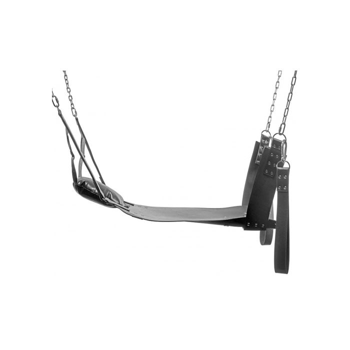 Deze luxe bondage sling is ontworpen om je partner in de lucht te laten zweven, volledig open en klaar voor jouw verkenning. Gemaakt van zwaar, maar betaalbaar leer, biedt deze sling een perfecte balans tussen kwaliteit en prijs, waardoor het toegankelijk is voor zowel beginners als doorgewinterde bondage-liefhebbers. Je partner kan comfortabel achterover leunen met hun voeten in de bijgeleverde, afneembare beugels, terwijl het zachte kussen hun hoofd ondersteunt.