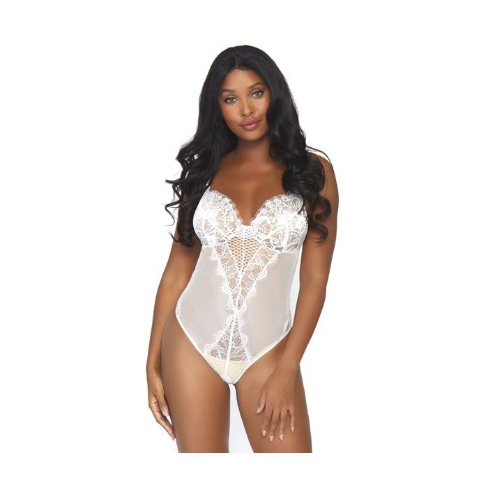 De cups van de body zijn ge maakt van sierlijk kant en dus licht doorzichtig. Het beugelvrije model zorgt voor een natuurlijk gevormde boezem en met de verstelbare schouderbandjes maak je de body goed passend bij jouw lichaam. Op de rug is de body voorzien van een haaksluiting.