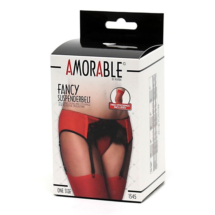 Fancy Jarretel Gordel met G-String en Kousen - Rood