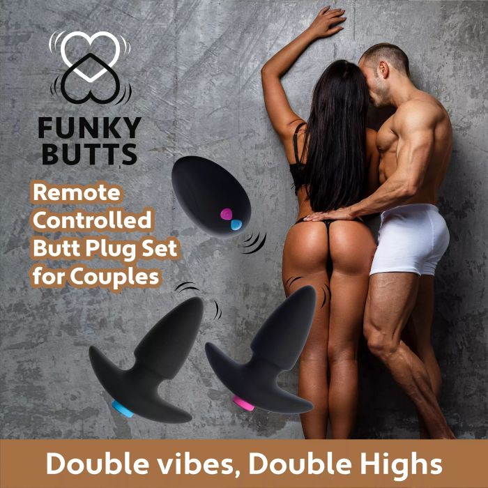 De FunkyButts Buttplugset van FeelzToys is speciaal ontworpen voor koppels die hun intimiteit willen verdiepen. Deze duo-set bestaat uit twee vibrerende buttplugs die perfect zijn om samen te dragen tijdens jullie meest gepassioneerde momenten. Met de draadloze afstandsbediening kun je de vibraties van beide plugs afzonderlijk bedienen, waardoor je eindeloos kunt experimenteren met plagen en verrassen. Kies uit maar liefst 10 verschillende vibratiestanden, variërend van zacht en sensueel tot intens en opwindend, zodat je altijd de juiste sfeer kunt creëren. En omdat ze fluisterstil zijn, kun je ze zelfs discreet gebruiken in het openbaar, wat zorgt voor een extra spannende ervaring.