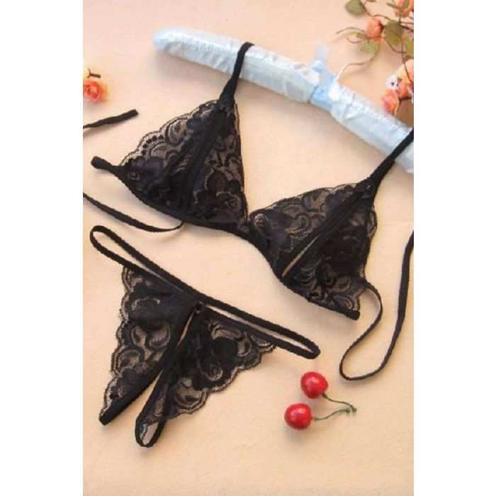 Feline Peekaboo Kanten Lingerie Set - Zwart