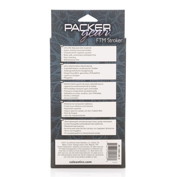 De Packer Gear Femalte to Male Stroker van Calexotics is een heerlijke rekbare masturbator met gestructureerde binnenkant en intense zuigkracht bij elke slag. Het gesloten uiteinde van deze masturbator zorgt voor krachtige zuigkracht die het gevoel van orale seks simuleert. Dit in combinatie met de geribbelde binnenkant zorgt voor een onvergetelijke sensatie! Het materiaal van deze Female tot Male stroker is super zacht en rekbaar waardoor hij bij iedere man een goede pasvorm heeft en zeer prettig aanvoelt. De Female to Male stroker heeft een lengte van 7 cm en diameter van 1 tot 5 cm. Speel samen of alleen met dit ultieme speeltje voor hem en neem deze Packer Gear masturbator gemakkelijk overal mee naartoe.