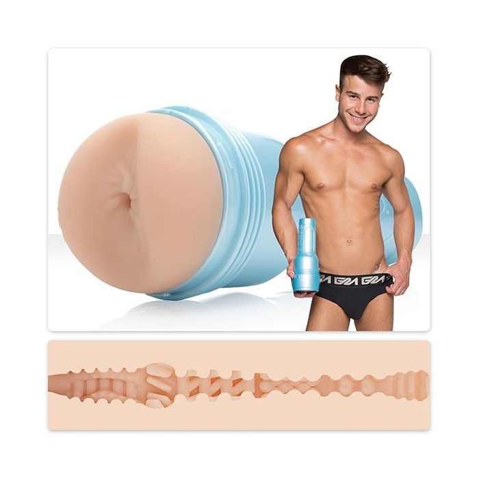 Maak kennis met de nieuwe lijn masturbators van Fleshjack. Speciaal voor jou heeft Fleshjack de kontjes van de lekkerste pornosterren nagemaakt. Wedden dat je het verschil niet ziet en voelt... Laat je fantasie de vrije loop tijdens een hete solosessie en beleef heerlijke hoogtepunten samen met jouw favoriete Fleshjack Boy. De sleeve die in de masturbator zit is helemaal gemaakt van SuperSkin, voor een super realistisch gevoel. Als je glijmiddel wil gebruiken neem er dan één op waterbasis (er zit een gratis zakje bij). Na gebruik is hij eenvoudig uit de houder te halen zodat je hem kunt reinigen met wat water en een toy cleaner.