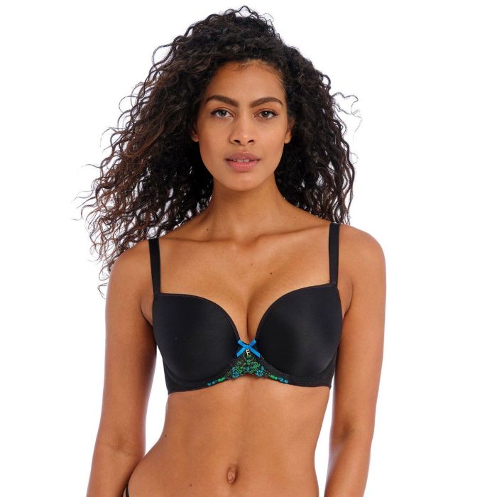 De Show-off Voorgevormde Bh - Zwart van het merk Freya is een zeer gewaagde bh uitgevoerd in een schitterende luxe uitvoering met maximale ondersteuning voor een geweldig comfort. De sexy bh is voorzien van zachte materialen en dankzij de gekleurde details in het groen en blauw krijgt de bh een spannende look. Combineer de Show-off Voorgevormde Bh - Zwart eenvoudig met de bijpassende string en jarretel voor een geweldige look.