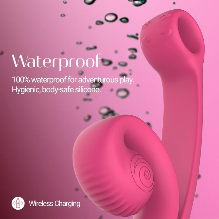 Ontdek de Snail Vibe Curve, een ergonomisch gevormde vibrator die speciaal is ontworpen voor G-spot-stimulatie en voorzien is van een getextureerde clitoriskop en een comfortabel handvat. Deze innovatieve vibrator maakt gebruik van de Slide'n'Roll-technologie, waardoor clitorale en vaginale orgasmes synchroon kunnen worden ervaren voor ongeëvenaard genot. Met krachtige motoren en aparte bedieningselementen biedt deze lichaamsveilige vibrator gemaakt van ultrazachte siliconen 100% tevredenheid. De Snail Vibe Curve is uitgerust met magnetisch draadloos opladen en heeft een waterdicht ontwerp, waardoor het de perfecte metgezel is voor zowel solo- als partnerspel.