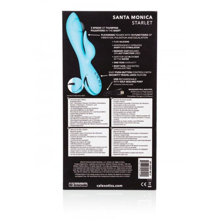 De Santa Monica Starlet is gemaakt van comfortabel siliconen en is 100% waterproof. Geniet dus ook in bad of onder douche van al zijn kwaliteiten. Uitgespeeld? Met de bijgeleverde USB-kabel is deze groene vibrator snel en makkelijk op te laden. Leg hem 2,5 uur aan de lader voor 150 minuten speelplezier. Tip: Leg de Santa Monica Starlet G-spot en clitoris vibrator binnen handbereik want dit zal binnen no-time absoluut een van je favoriete speeltjes zijn!