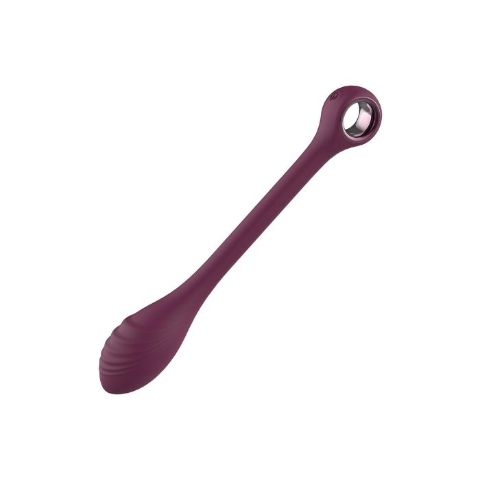 Deze verleidelijke vibrator is gemaakt van luxe, gladde siliconen die je huid strelen met fluweelzachte zachtheid. Het elegante glanzende ringhandvat voegt een vleugje elegantie toe aan je intieme momenten en biedt tegelijkertijd een veilige grip en moeiteloze manoeuvreerbaarheid.