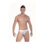 De slip heeft een tailleband waarop het GIGO logo af te lezen is. De tailleband is breed, laag en elastisch. Aan de voorkant van de tailleband is een metalen drukknoop te zien. Hieraan is aan de binnenkant van de slip een elastische cockring bevestigd. De uitneembare cockring draagt bij aan een voller en gelift geslacht. De comfortabele buidel biedt voldoende ruimte.