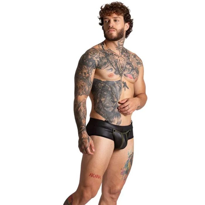 Ontdek je wilde kant met onze Fetish Jockstrap van het populaire gay merk GIGO! Deze jockstrap is ontworpen voor de avontuurlijke geest die zijn of haar kinks wil verkennen. Gemaakt van een leerachtige stof, biedt het niet alleen een sexy uitstraling, maar ook een comfortabele pasvorm die perfect aansluit op je lichaam. De voorzak is speciaal ontworpen voor extra ondersteuning en accentueert je vormen op een verleidelijke manier. Met de verwijderbare cup kun je zelf bepalen hoe je deze jockstrap wilt dragen, waardoor je de vrijheid hebt om te experimenteren met verschillende looks en stijlen.