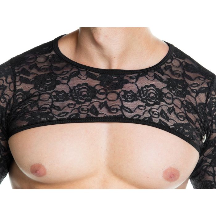 Met een harnas laat jij jouw schouders en rug nog breder en extra gespierd lijken. De Harnas Redemotion van het merk GIGO geeft een romantische en winterse uitstraling aan jouw gespierde bovenlichaam. Het harnas is gemaakt van soepele zwarte stof met een prachtig kantwerk.
