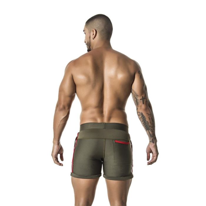 Deze hippe short voor mannen van het merk GIGO kun je voor meerdere gelegenheden gebruiken en is alleen daarom al een musthave voor jouw garderobe. Dit groene heren short heeft rode en witte banen op de zijkant en is een hip model met een hele mooie pasvorm. Deze GIGO short is voorzien van steekzakken en een decoratief zakje op de achterkant. De verschillende kleuren van deze hippe short maken hem goed te combineren met t-shirts en tops. Draag deze short tijdens een warme dag, het sporten of wanneer je een avond op stap gaat. Met deze GiGo hippe short voor mannen zit je eigenlijk altijd goed en zul je gegarandeerd goed voor de dag (of nacht) komen.