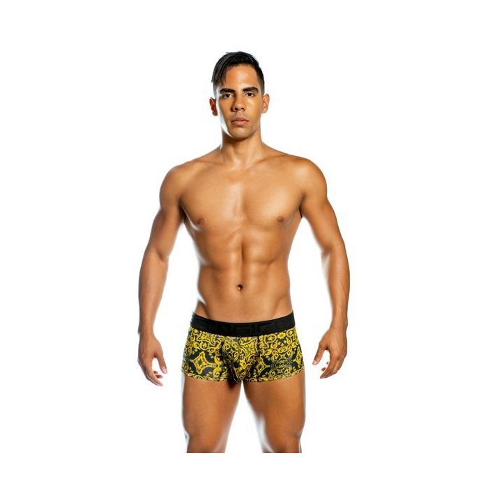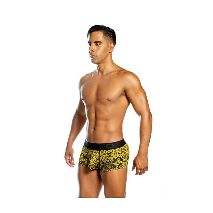 Comfortabele en verleidelijke GIGO Trunk tribal. Deze spannende heren boxershort is nauwsluitend en gemaakt van sexy zacht materiaal waardoor het extra comfortabel zit. Je billen worden lekker sensueel omsloten dankzij de stretch in de stof. De GIGO trunk heeft een goedgevormde buidel wat jouw zaakje sensueel laat uitkomen. Een supersexy lage trunk die nog genoeg tot de verbeelding overlaat tijdens het voorspel. De zwart met gele tribal print maakt deze GIGO herenboxer mannelijk en stoer, perfect voor je Tinderdate of voor dat intieme feestje. Van GIGO herenboxershorts kan je nooit genoeg hebben en met onze collectie GIGO underwear vul jij je garderobe eenvoudig aan.