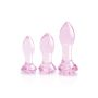 De Glazen Anal Training Set Rosebud komt uit de Glaze Glass-collectie van het merk Dreamtoys. De set bestaat uit 3 anal plugs in verschillende maten. Elke plug is gemaakt van lichaamsveilig borosilicaatglas en is dankzij de taps toelopende vorm eenvoudig in te brengen. Door het materiaal zijn de buttplugs perfect voor temperatuurspel. Verkoel of verwarm de buttplugs door hem onder warm of koud water te houden. Daarnaast zijn de plugs compatibel met alle soorten glijmiddelen.
