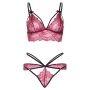 De bralette bh heeft ongevoerde en beugelvrije cups. De bh is met de verstelbare bandjes goed op maat te maken en in de rug is een bh sluiting gezet. De bralette en de string zijn afgewerkt met spannende bandjes.