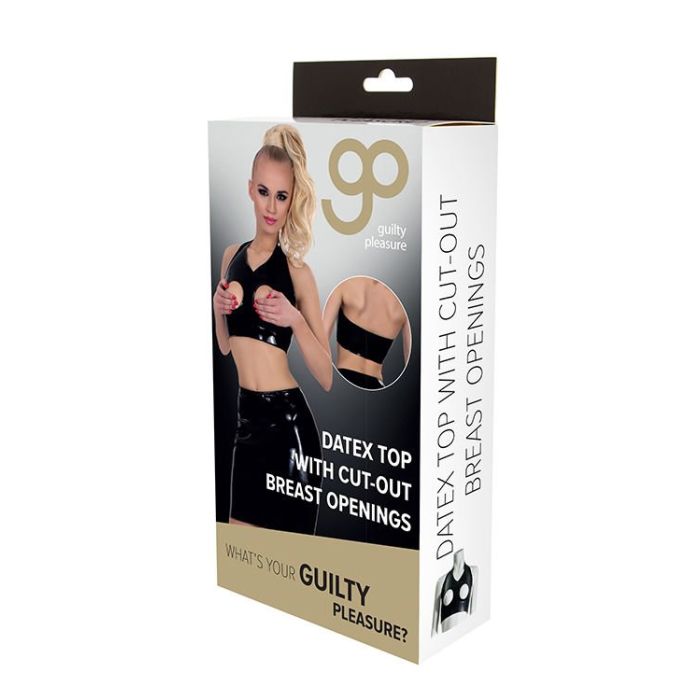 De Datex Haltertop met open cups van Guilty Pleasure geeft jou een erg sexy uiterlijk. Door de opening in de voorkant zijn je borsten volledig zichtbaar. De top is gemaakt van datex. Datex is een combinatie van latex en stof. De buitenkant is gemaakt van rekbaar latex en de binnenkant is afgewerkt met rekbaar stof. Je bent dus geen speciale poeders nodig om het topje aan te trekken. Combineer dit topje met een bijpassende latex rok of jarretelgordel en je partner zal zijn ogen niet van je af kunnen houden.