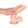 Heerlijke realistische dildo die haast niet van echt is te onderscheiden. Hij heeft een heerlijke geaderde schacht waarvan de aders tijdens de penetratie goed voelbaar zijn. De eikel heeft een puntige kop en ziet er levensecht uit. Je kan heerlijk diep wegzakken op deze dildo want hij heeft een stel lekkere volle ballen. Gebruik de zuignap om de dildo ook handsfree te kunnen gebruiken en verwen jezelf of je lover terwijl jij geniet van deze lekkere dikke dildo. Maak de dildo na elk gebruik snel en eenvoudig schoon metwater en een milde zeep.