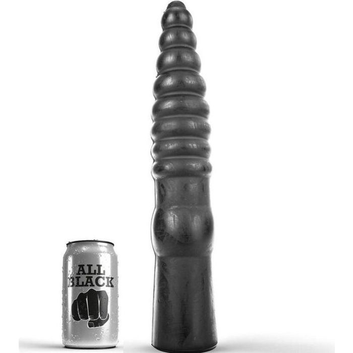 Ben je toe aan een nieuwe uitdaging? Kies dan voor deze heerlijk, zwarte, geribbelde dildo van All Black! Deze dildo is met zijn lengte van 34 cm lekker diep in te brengen. De ribbels op de schacht stimuleren je heerlijk. Doordat hij flexibel is buigt hij mee met al jouw bewegingen.