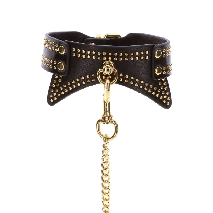 De Halsband en riem met studs Taboom zijn perfect voor degenen die op zoek zijn naar een stijlvolle manier om bondage en BDSM te verkennen. Met een strakke zwarte kraag, versierd met goudkleurige studs, straalt deze set een aura van sensualiteit en verfijning uit. Gemaakt van superzacht vegan PU-leer, biedt deze kraag niet alleen comfort, maar ook een intieme beperking die je verlangens naar nieuwe hoogten zal brengen. Of je nu je partner wilt laten leiden of nieuwe ondeugende ervaringen wilt verkennen, deze set is perfect voor jou.
