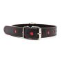Deze halsband met hartjes en riem is bedoeld voor koppels die houden van een BDSM of SM rollenspel. De halsband is verstelbaar zodat deze altijd past. De grappige rode hartjes geven de halsband een romantische uitstraling. De halsband is gemaakt van soepel leer zodat deze niet in de huid snijdt. Gebruik de halsband met riem bij een kinky rollenspel in de slaapkamer waarbij de sub de bevelen van de meester onvoorwaardelijk moet opvolgen. De halsband is waterproof en kan dus eventueel ook in bad of onder de douche worden gedragen. Zorg voor elkaars veiligheid en breek de sessie direct af als de ondergeschikte hierom vraagt.