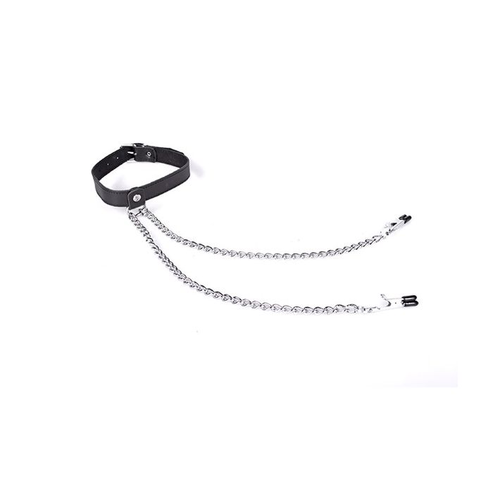 Halsband met Tepelklemmen 'Nipple Play' Zwart - Kiotos Leather