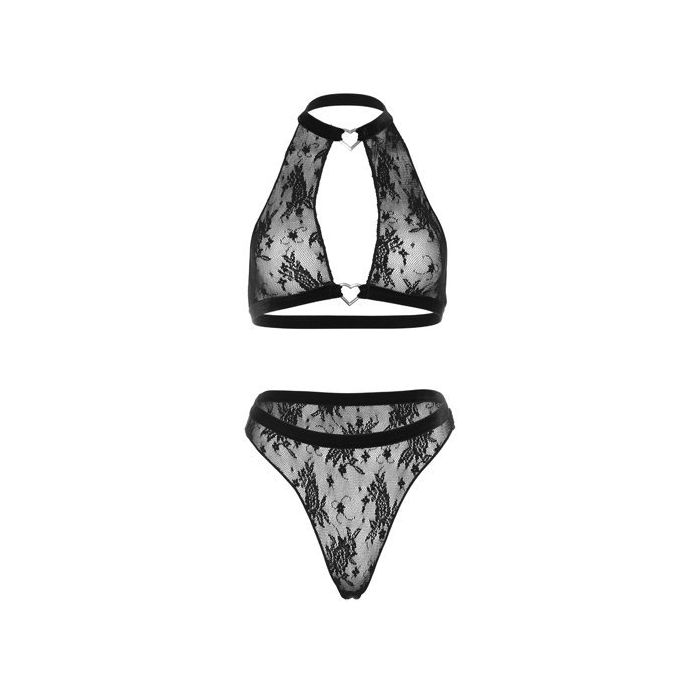 Ga voor een heerlijk verleidelijke look met de Halter Top en String - Zwart van Leg Avenue. De top en string zijn gemaakt voor doorzichtig stretch nylon voor een uitdagend strak resultaat. De halter top heeft ragfijne beugelvrije cups voor een natuurlijk gevormd decolleté. Het decolleté is afgewerkt met een ruime keyhole met boven en onder een hartvormig detail.