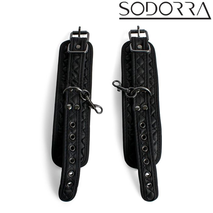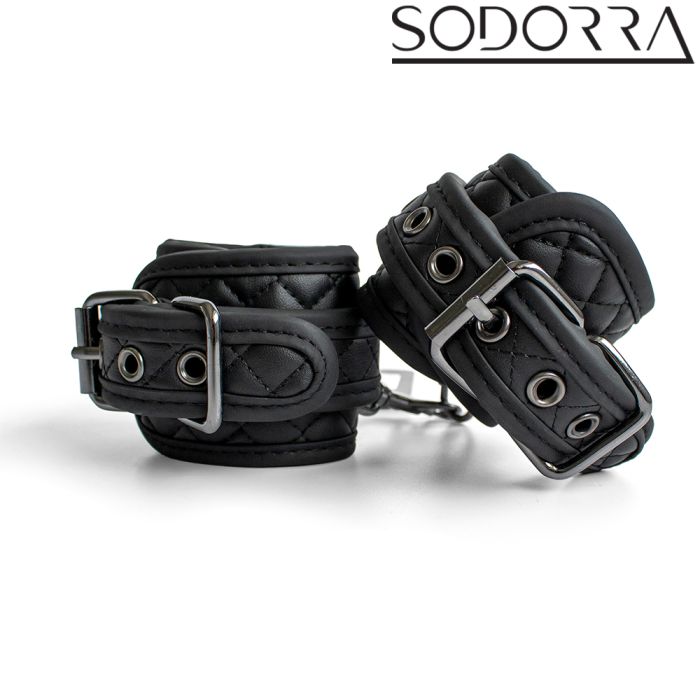 De SODORRA Vegan + Neo Diamond handboeien zijn de perfecte combinatie van kracht en comfort. Deze bondage-boeien zijn vervaardigd uit hoogwaardig, zacht veganistisch leer en duurzaam neopreen, waardoor ze niet alleen stijlvol zijn, maar ook een luxe gevoel geven. Het strakke, volledig zwarte ontwerp met diamantvormige vulling voegt een vleugje elegantie toe aan je slaapkamer, terwijl de stevige karabijnhaken je de vrijheid geven om je fantasieën te verkennen. Of je nu je polsen of enkels wilt vastbinden, deze boeien creëren een spannende dynamiek die elke aanraking intensifieert en je zintuigen prikkelt. Durf te experimenteren en laat je verlangens de vrije loop met de SODORRA Vegan + Neo Diamond Restraints – een must-have voor elke avontuurlijke liefhebber van bondage!