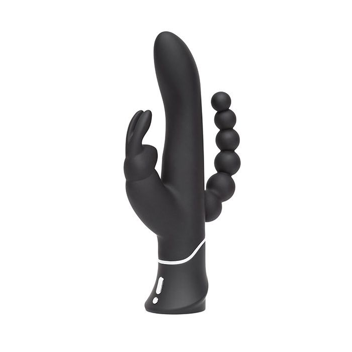 De triple curve is speciaal ontworpen voor de dames die graag al hun gaatjes gevuld hebben. Jij kan de triple curve namelijk vaginaal en anaal gebruiken. Daarnaast is de vibrator voorzien van een clitorisstimulator. Geniet met de Happy Rabbit - Triple Curve dus van een drie dubbele stimulatie. De vibrator is gemaakt van super zacht siliconen materiaal en zal als een veer over de huid heen gaan.De clitoris stimulator in de vorm van een konijntje met oortjes die overheerlijk heen en weer zullen tikken op je clitje. De vibrator is oplaadbaar en zal dus op elk moment dat jij zin hebt werken. Het handige push button systeem onderaan de toy is eenvoudig in gebruik en zal jou verwennen met 9 verschillende standjes en 3 snelheden. De dubbele motor zal elk plekje goed masseren en stimuleren zodat jij gegarandeerd een mind blowing orgasme zal hebben. Maak de toy na elk gebruik goed schoon onder de kraan met een milde zeep en een toycleaner en zorg dat jij de toy na elk gebruik oplaad zodat jij hem kan pakken wanneer je weer zin krijgt.