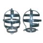 Een oerdegelijke hoofdkooi met drie hoofdringen. Met scharnieren aan de zijkant en opent met inbussleutel. Aan de binnenzijde bekleed met rubber. Ringen zijn bevestigd aan de bovenkant en aan de voorkant en achterkant van de hals, hieraan kan naar wens een riem of ketting vastgemaakt worden.