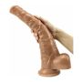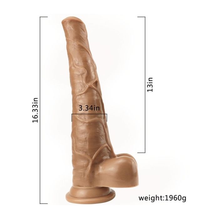 Deze volumineuze dildo heeft de vorm van een paardenpenis met een inbrengbare lengte van 32 cm. Je kunt de dildo vastmaken met zijn sterke zuignap op een gladde ondergrond. De dildo heeft realistische aderen, eikel en ballen.