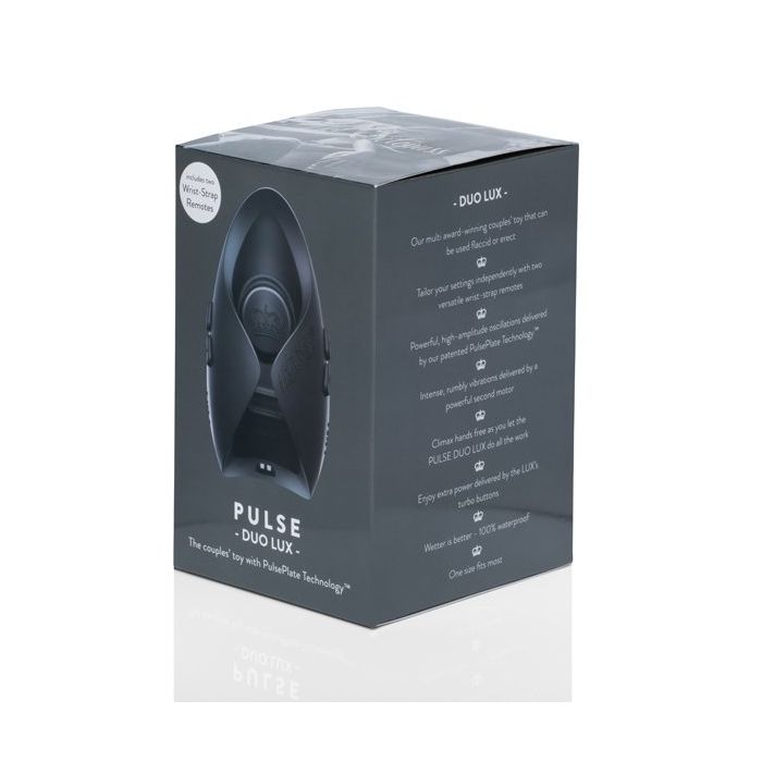 De Pulse Duo Lux masturbator is gemaakt van zacht siliconen materiaal en voelt heerlijk aan op de huid. Maak het nog aangenamer door glijmiddel op waterbasis te gebruiken wanneer je met dit speeltje aan de slag gaat. Bij de masturbator worden twee afstandsbedieningen geleverd in de vorm van horloges. Op de horloges bevinden zicht 4 knoppen die ook in het donker goed voelbaar zijn. De + en – knoppen regelen de snelheid. De kroonknop heeft een boost-modus en geeft extra kracht. Met de ‘O’ knop doorloop je de verschillende modi. De Pulse Duo Lux is afgewerkt met de gepattendeerde PulsePlate™ en een vibrerende onderkant. Op deze manier kunnen beide partners tegelijkertijd genieten van stimulatie. Wikkel de vleugels van de masturbator om de penis heen en geniet van diepe, pulserende vibraties. Ook op de masturbator bevinden zich bedieningsknoppen, zodat je dit speeltje ook zonder de horloges kunt gebruiken.
