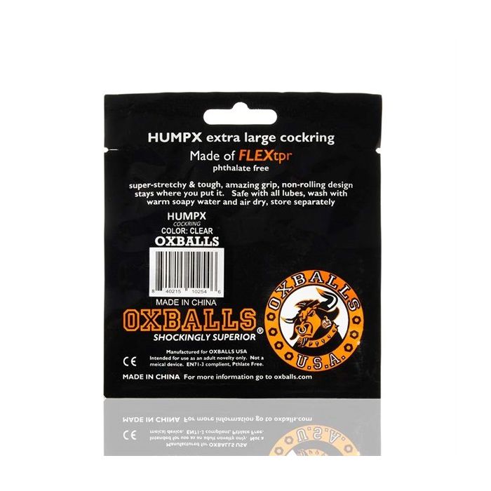 Maak kennis met de grotere versie van de Humpballs ring. Deze geweldige HumX Cockring Clear is ontworpen met het oog op comfort. De superzachte cockring is rekbaar en zal zeer comfortabel rond je penis zitten. Het geeft je zaakje een geweldige erectie en wanneer jij het om hebt terwijl je penis in slappe toestand is zal de ring zorgen voor een grotere bult in bijvoorbeeld je jockstrap. Door de platte binnenkant zal de ring goed op zijn plek blijven zitten en voorkomt het afrollen. De HumX Cockringen zijn verkrijgbaar in diverse kleuren zodat jij ze ook allemaal tegelijk kan gebruiken voor een kleurrijk effect.