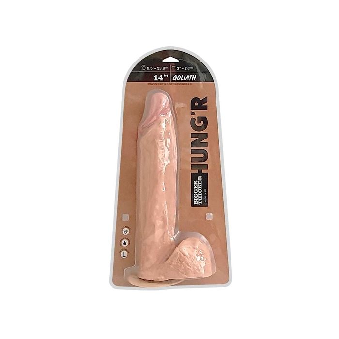 Maak kennis met de HUNG'R Goliath, jouw nieuwe grote vriend die je niet wilt missen! Deze indrukwekkende dildo is vervaardigd uit zacht PVC, wat zorgt voor een comfortabele en plezierige ervaring. Met een lengte van maar liefst 36 cm en een diameter van 7,60 cm is de Goliath perfect voor de gebruiker die op zoek is naar iets groters en uitdagenders. De stevige zuignap aan de onderkant maakt het eenvoudig om deze dildo op een platte ondergrond te bevestigen, zodat je je handen vrij hebt om te genieten van het moment. Of je nu alleen bent of samen met een partner, de Goliath biedt eindeloze mogelijkheden voor plezier.