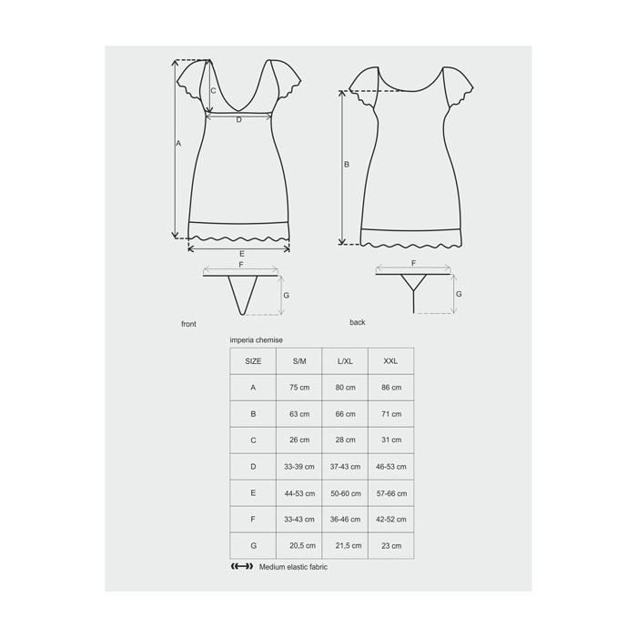 So sexy, so you! De Imperia Chemise van Obsessive bestaat uit een magische combinatie tussen gladde stof en sexy kant. Het nachtjurkje heeft een diep uitgesneden, doorschijnend decolleté en zowel de cups en de korte kapmouwtjes zijn geheel gemaakt van kant. De chemise zit lekker strak om je lichaam waardoor je er fantastisch uit zult zien. Dus wacht niet langer en start je stoute spel van verleiding in de Imperia Chemise.
