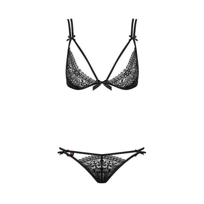 In de luxe Intensa Lingerie Set - Zwart van Obsessive zul jij er zeker super sexy en zelfverzekerd uitzien. Dit opwindende setje gemaakt van zacht, multistretch kant met sierlijk bloemmotief en speelse details wordt geleverd in een mooie cadeauverpakking. De set is dus leuk om cadeau te doen in het doosje, of trek de set aan en verras je partner.
