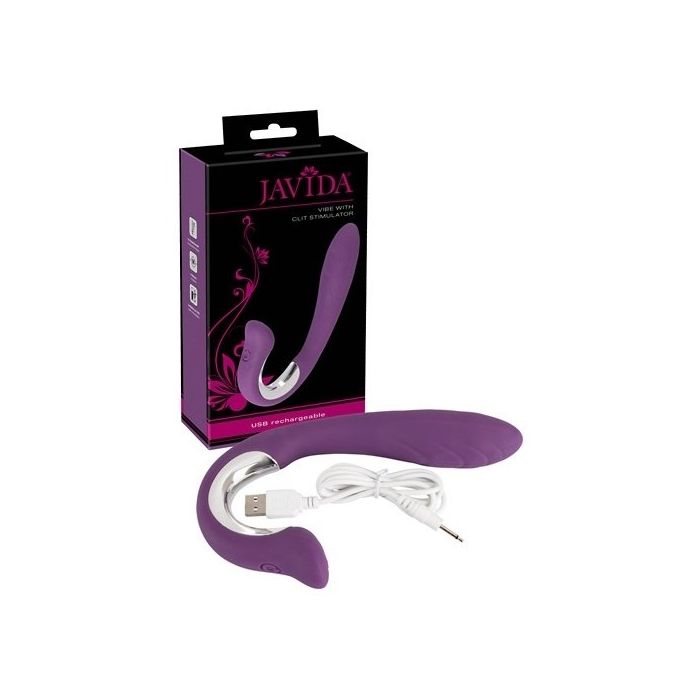 Deze heerlijke vibrator van het merk Javida heeft een gebogen vorm en clitorisstimulator. De vibrator is gemaakt van siliconen en te gebruiken met glijmiddelen op waterbasis. Door de drukknop aan de voorkant kun je switchen tussne tien vibratiestanden. Verder is de Javida vibrator oplaadbaar en spatwaterdicht.