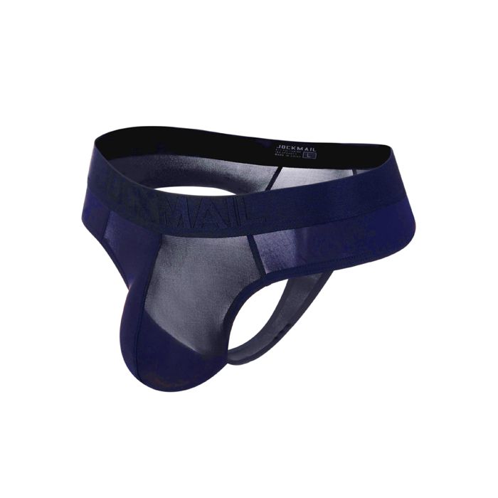 Een spannende look, een geweldig comfort en een zijdezachte aanraking. De Jockmail Ice Wire Belt String - Navy heeft het allemaal! Deze string is gemaakt van doorzichtig micro mesh. In het mesh is Ice Silk Spandex verweven waardoor de string heerlijk zacht en glad aanvoelt. Deze string vraag dus om aangeraakt te worden.