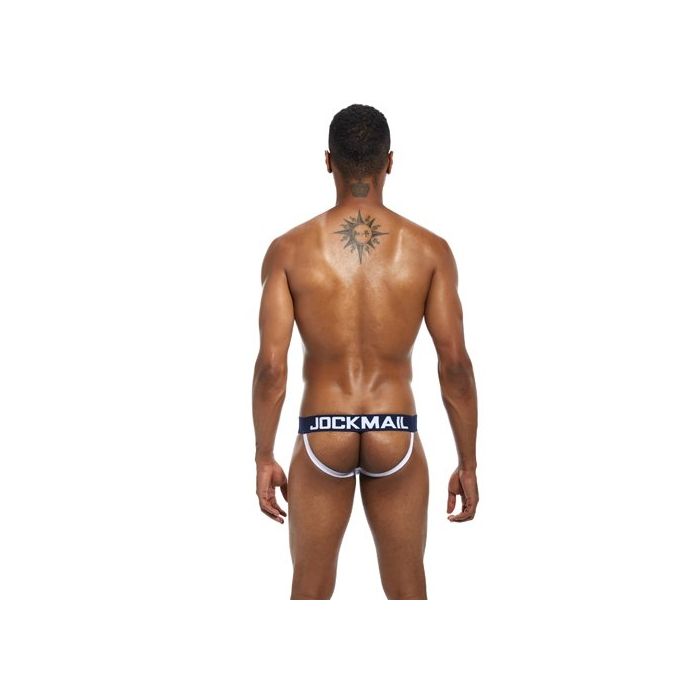 In de spannende JM216 Floral Jockstrap - Marine Blauw van het merk Jockmail ga jij met de billen bloot. Dit klassieke model heeft een open achterkant met liftende elastische banden waardoor jouw kontje er nog lekkerder uit zal zien. De super zachte buidel is heerlijk luchtig en bovendien zweet bestendig. De jockstrap is donkerblauw met zachte witte zomen en een wit Jockmail logo op de tailleband.