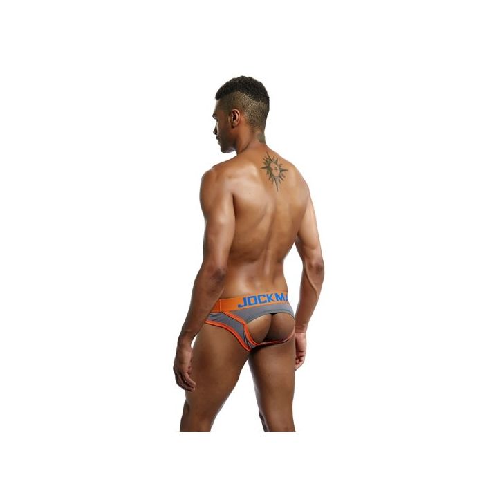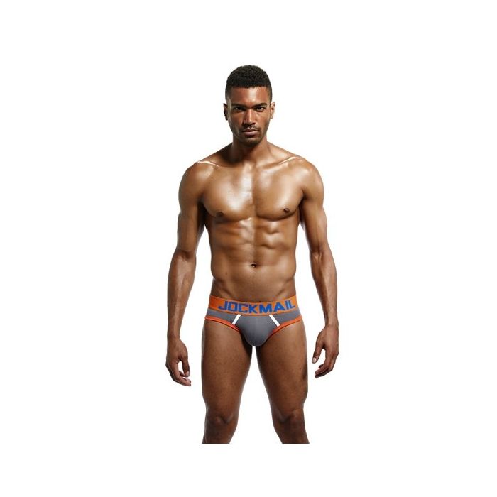 Gemaakt van ademend katoen, voelt de JM312 slip super zacht aan op de huid en is bovendien zweetbestendig, zodat je je de hele dag fris en comfortabel voelt. De grijze stof wordt prachtig aangevuld met een opvallende oranje tailleband en zomen, terwijl de blauwe letters en witte naden een speelse touch geven aan het geheel.