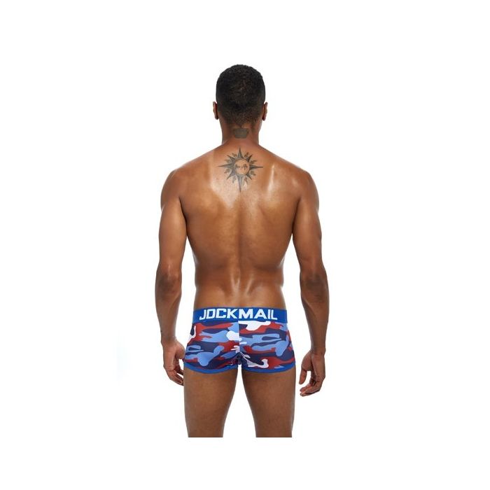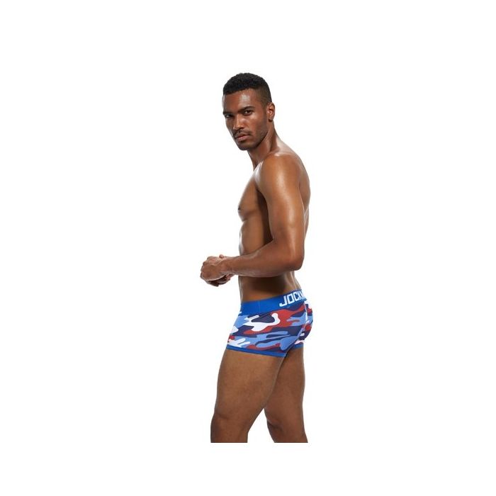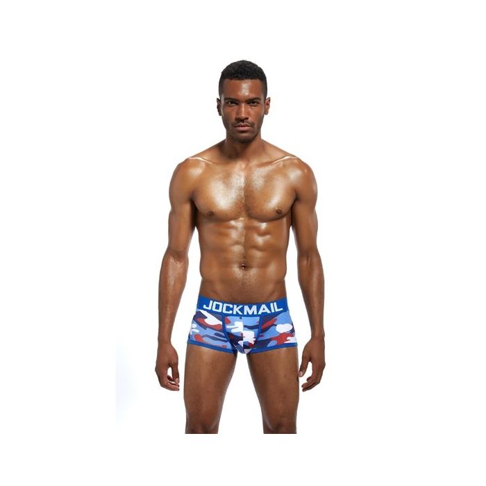 Deze korte boxershort van Jockmail staat garant voor een comfortabele en perfecte pasvorm. De JM413 Camouflage Boxer - Blauw zit lekker strak en heeft een low rise model. De boxershort is gemaakt van gekamd katoen en Spandex voor een hoog draagcomfort. Het katoen is super zacht, luchtig en zweet bestendig, wat deze boxer perfect maakt om te dragen tijdens het sporten.