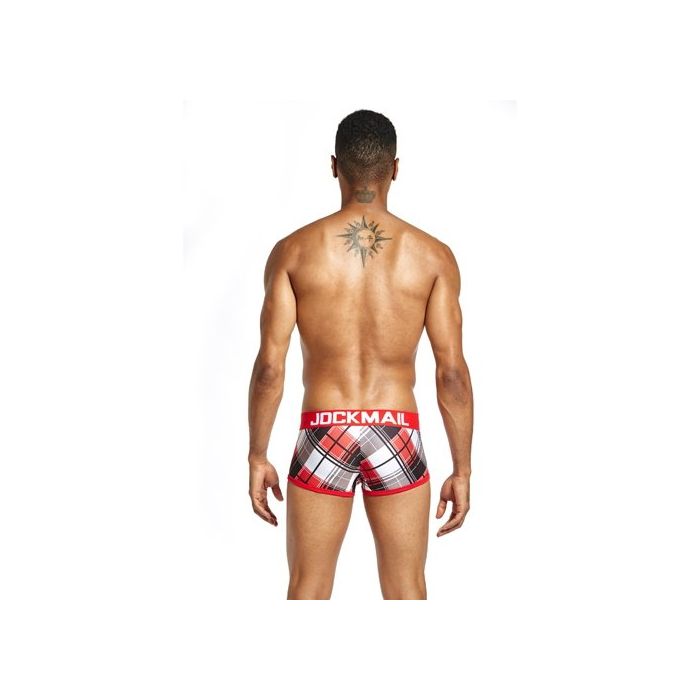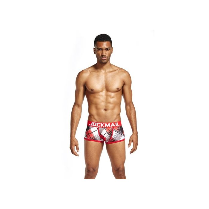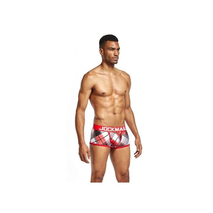 Laat jouw gespierde billen en dijen goed uitkomen in de JM420 Plaid Boxer - Rood van het merk Jockmail. Deze zachte en soepele boxershort is gemaakt van hoge kwaliteit katoen en elastaan voor een hoog draagcomfort en een perfect aansluitende pasvorm. De elastische tailleband met Jockmail logo zit laag om de heupen en de boxer heeft een speelse ruitjes print, voor een stoere lumberjack look.