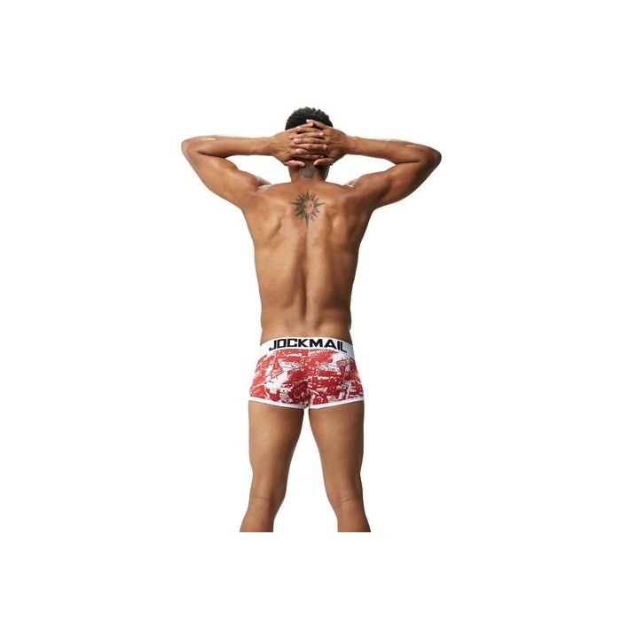 Ga voor een stoere look met de JM430 Bog City Boxer - Rood van het merk Jockmail. Het zachte stretch katoen zit lekker strak rond jouw mannelijke lichaam en de elastische tailleband zit laag om de heupen voor een sexy uitstraling. Het katoen is lekker luchtig, zweet bestendig en afgewerkt met zachte zomen voor een optimaal draagcomfort. Op de boxershort is een stijlvolle print aangebracht.