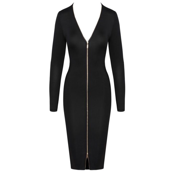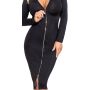 Maak kennis met de ultieme combinatie van sexy en elegantie met deze zwarte jurk van Cottelli PARTY! Deze jurk met lange mouwen en een nauwsluitend model accentueert je figuur op een prachtige manier, terwijl de midi-lengte een verfijnde uitstraling geeft. De opvallende goudkleurige 2-wegritssluiting aan de voorkant is niet alleen een eyecatcher, maar biedt ook de mogelijkheid om de jurk van boven of onder te openen, zodat je zelf kunt bepalen hoe je je look wilt stylen. Gemaakt van een fijn stretchmateriaal, sluit de jurk perfect aan op je lichaam en zorgt het voor optimaal draag- en bewegingscomfort. Of je nu een avondje uit gaat of een speciale gelegenheid hebt, deze jurk is de perfecte keuze om je zelfvertrouwen een boost te geven en alle ogen op jou te richten!