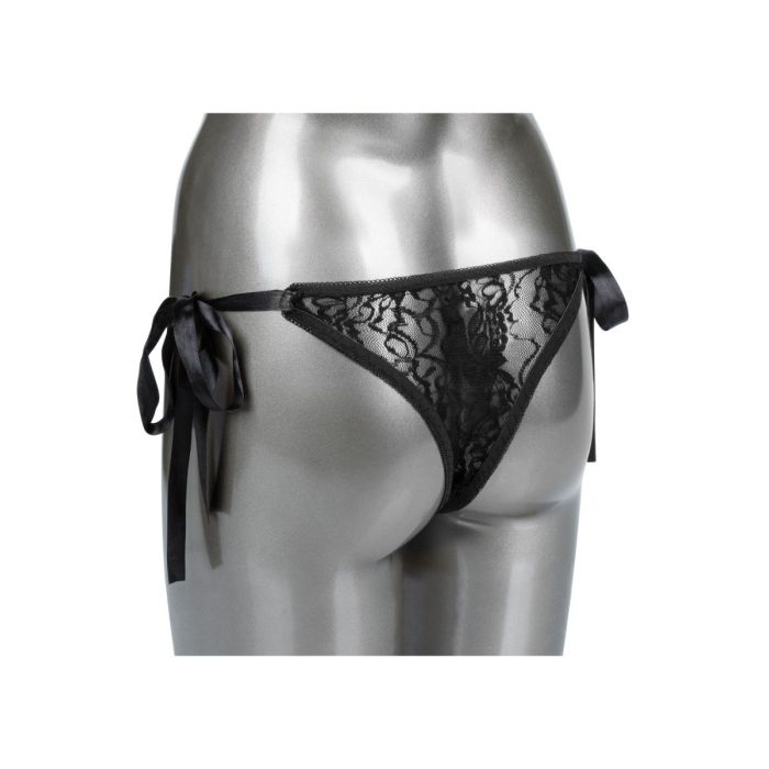 Hebben jullie regelmatig een date night op de planning staan en ben je op zoek naar een manier om deze nog iets spannender te maken? Deze kanten string met vibrerende bullet van Calexotics zorgt ervoor dat jullie hele avond verandert in een lang, uitgerekt voorspel. De kanten string is licht doorschijnend, super sexy en beschikt over een verborgen vakje voor de vibrerende bullet. Deze bullet ligt precies tegen de clitoris aan, waardoor de vibraties voor heerlijk, intens genot zorgen. De vibrerende bullet beschikt over maar liefst 12 verschillende standen en kan bediend worden met bijgeleverde draadloze afstandsbediening. Dit kun je natuurlijk zelf doen, maar het is nog veel leuker om de controle aan je partner te geven. De afstandsbediening heeft een bereik van 10 meter en de bullet is volledig waterproof.