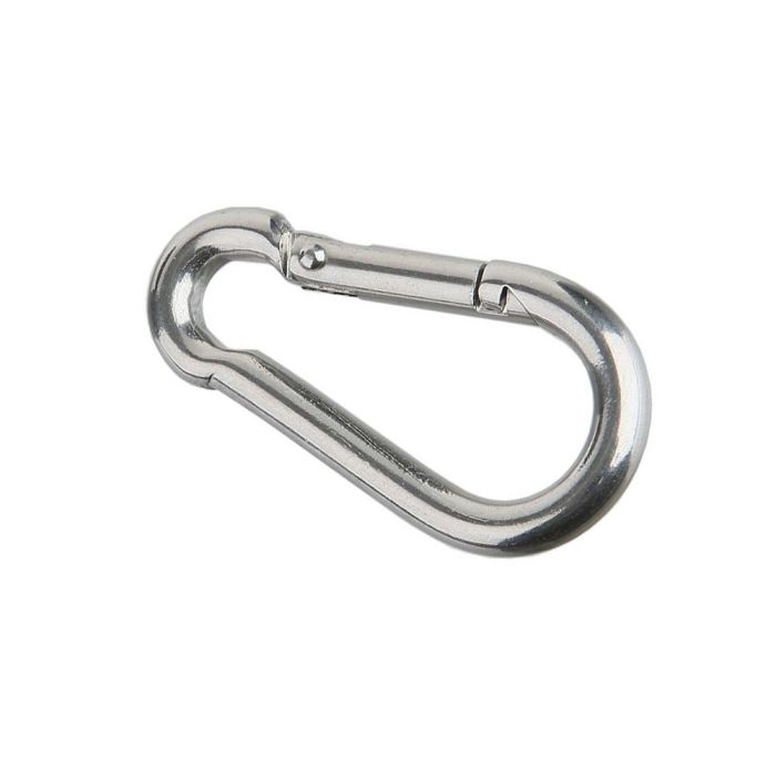 De Karabijnhaak heeft een lengte van 6 cm en dikte van 6 mm. Doordat het materiaal verzinkt is wordt bescherming geboden tegen corrosie, zodat corrosie of andere aantasting van het materiaal wordt voorkomen.