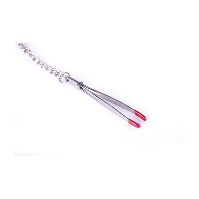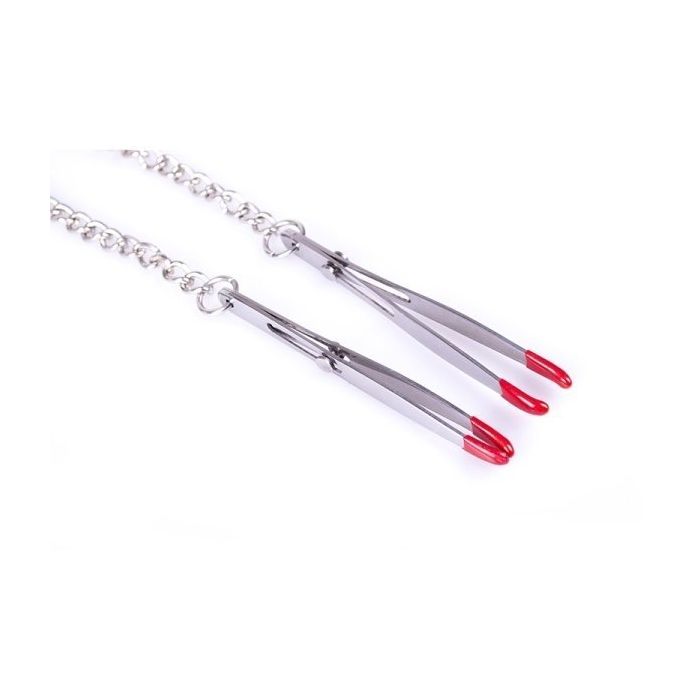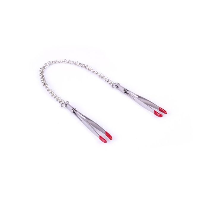 Deze tepelklemmen met ketting garanderen je een plezierige tepelklem-ervaring. De druk van de twee klemmen is naar wens in te stellen. Draai gewoon aan de schroeven om de druk te verminderen of vermeerderen. Net wat je lekker vindt, voor genotvolle pijn! Verbeter je slaapkamer bondage met deze verstelbare tepelklemmen die zowel geschikt zijn voor mannen als vrouwen. Genot voor twee dus.