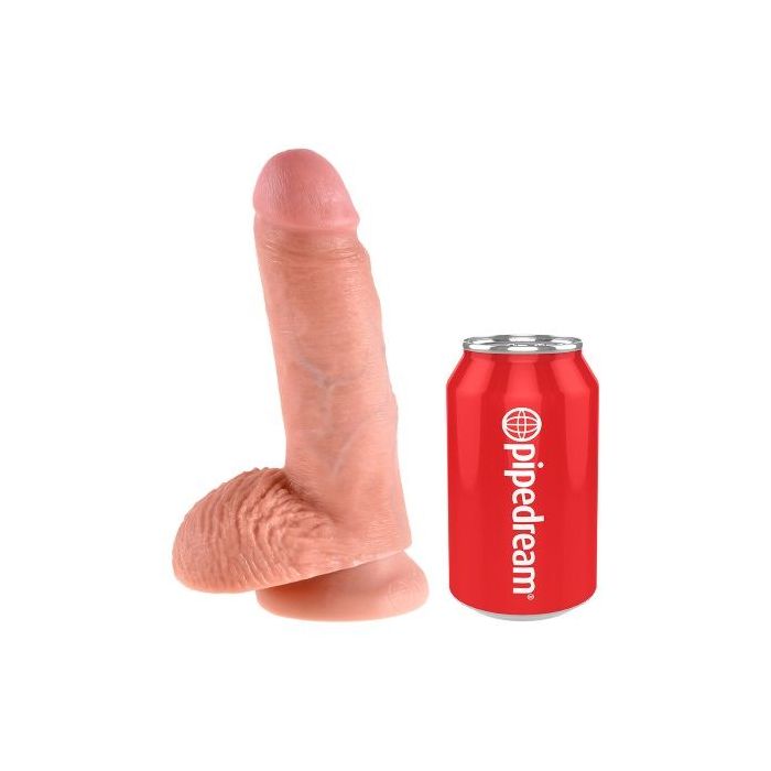 Lekkere dildo van King Cock met krachtige zuignap. Realistisch ogende huidkleurige dildo met aders een balzak.