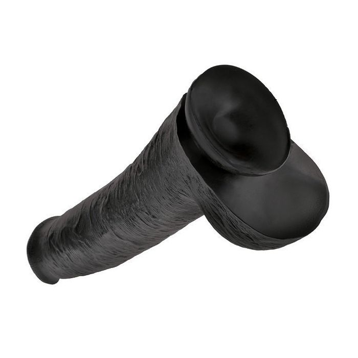 Droom jij van een maatje meer? Met deze gigantische zwarte jongen kom je zeker aan je trekken! Het prachtige, realistische design van deze XL Dildo van het merk King Cock spreekt zeer tot de verbeelding. Hij is gemaakt met een scherp oog voor detail, de geaderde schacht, de eikel en de mooie balzak.... alles ziet er echt uit.... en nóg belangrijker, hij voelt ook echt. Het TPR-materiaal is zacht en flexibel. De schacht is heerlijk buigzaam zodat hij met al jouw bewegingen meegaat. De krachtige zuignap aan de onderkant blijft perfect zitten op elke vlakke, schone ondergrond. Ideaal om lekker hands free te genieten, zo heb je ook nog je handen vrij voor andere spannende handelingen.