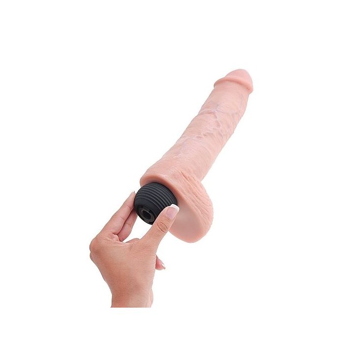 Deze grote, dikke King Cock Spuitende Dildo is ultra-realistisch en zal al je verlangens naar 'cum-play' bevredigen! Hij is helemaal met de hand gemaakt met een fantastisch oog voor detail. De geaderde schacht zorgt voor extra stimulatie. De dikke, volle balzak spreekt zeer tot de verbeelding en met een beetje fantasie stel je je voor dat hij jou heerlijk volspuit aan het eind van elke solosessie.