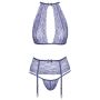 Met het dragen van de Kissable Lingerie Set - Lavendel zul jij zeker een romantisch plaatje zijn. Deze prachtige lingerie set bestaande uit een beugelvrije bh en een lage string met bijpassende jarretelgordel heeft een romantische uitstraling en is uitgevoerd in de prachtige kleur lavendel. De set is gemaakt van romantisch kant en doordat de set semi transparant is heeft de set een lekker uitdagende look! De set is heerlijk zacht en elastisch voor een perfect pasvorm.